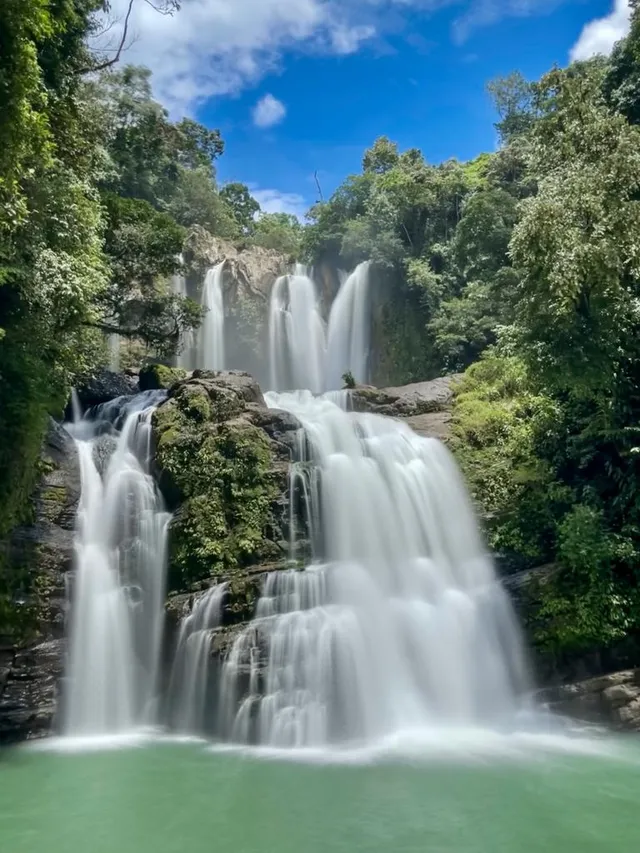 The Nauyaca Waterfalls are located in a canyon approximately eighty meters wide. One of the falls is forty-five meters high in free fall and the other twenty meters high in stepped fall, forming at the foot of it, a pool of a thousand square meters and six meters deep. Then there are other natural pools of smaller size, which can be used for the enjoyment of the whole family.